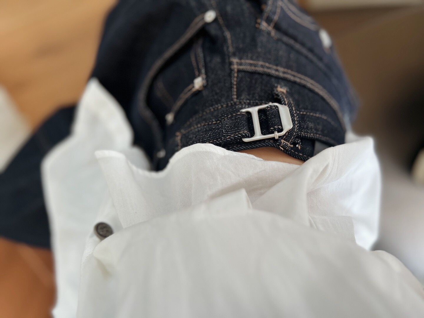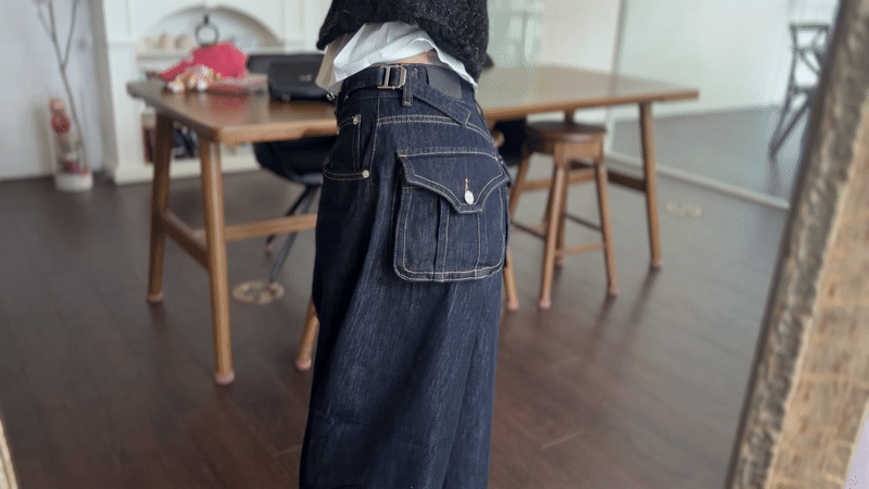 -뒷포켓과 옆 버클의 포인트가 멋스러운 데님팬츠입니다.