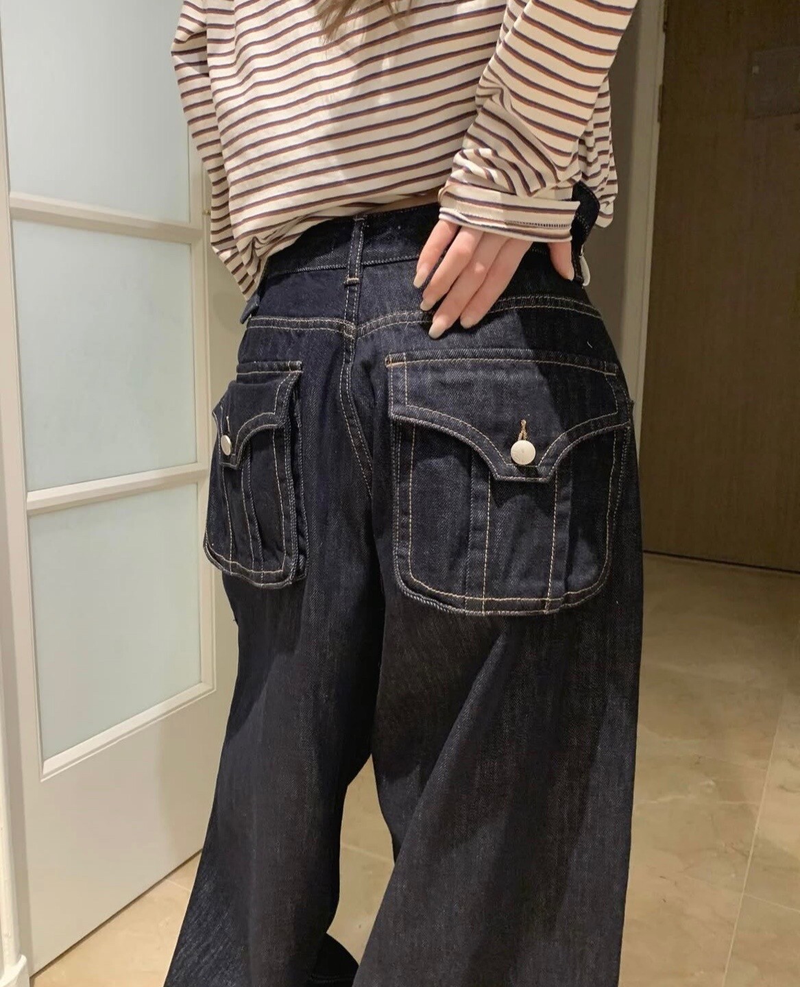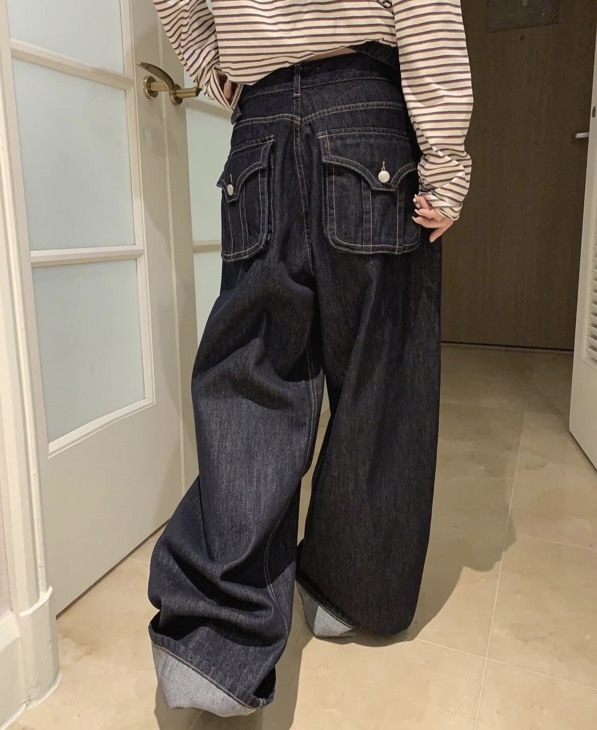 -와이드하게 일자로 툭 떨어지는 데님 핏이 매우 예뻐요