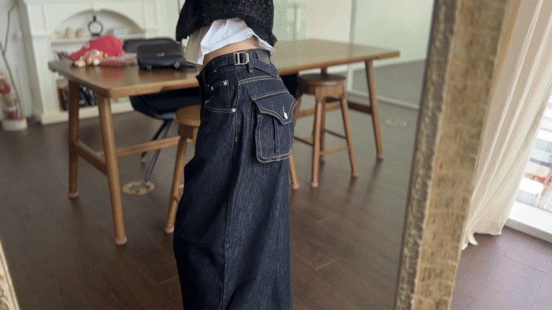 (quality line) 포켓 버클 롤업 와이드 데님-pt