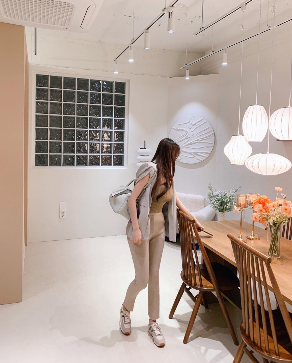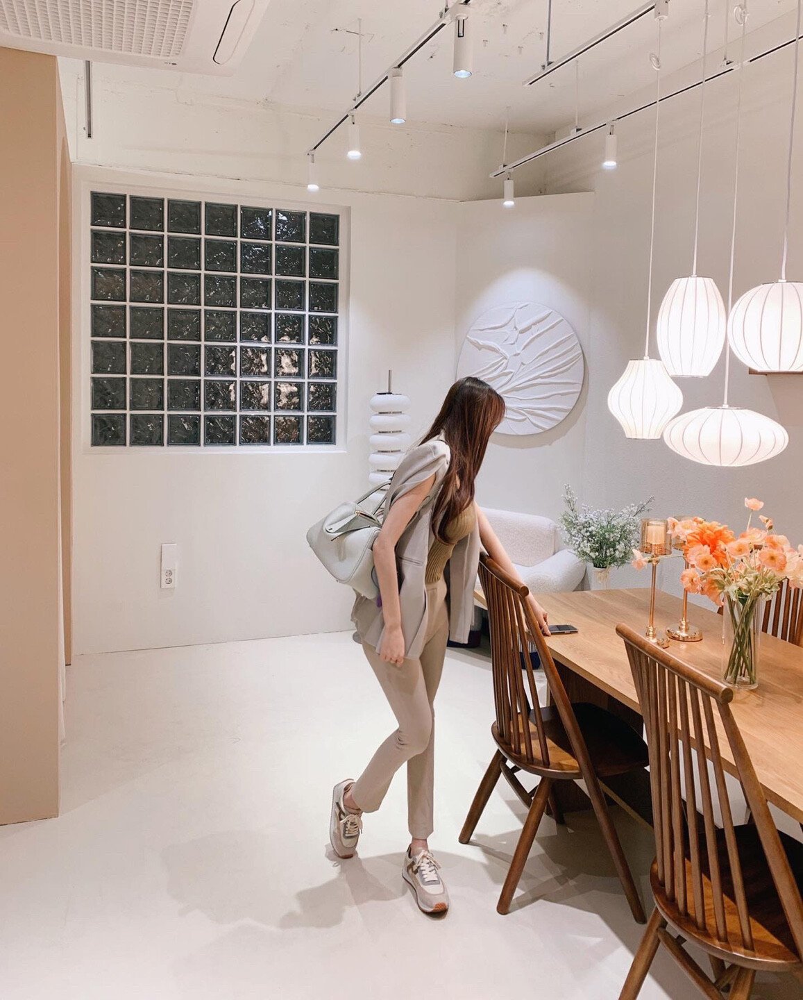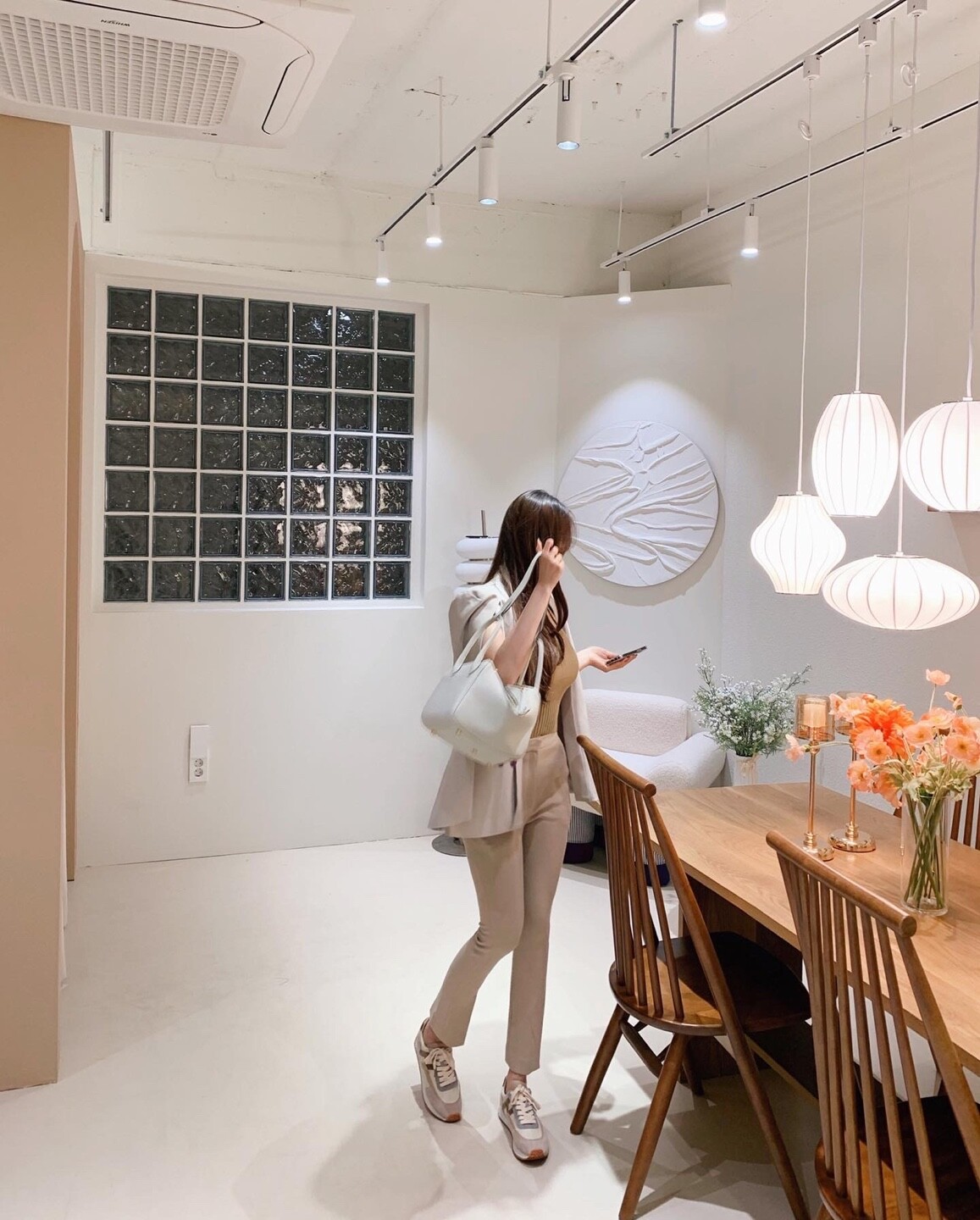 화이트 계열 색상 , 니트 , 린넨 등의 소재