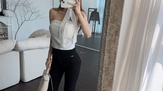 (high quality) 타이 쉬폰 실루엣 탑(2col) / 지퍼 오픈 클로징