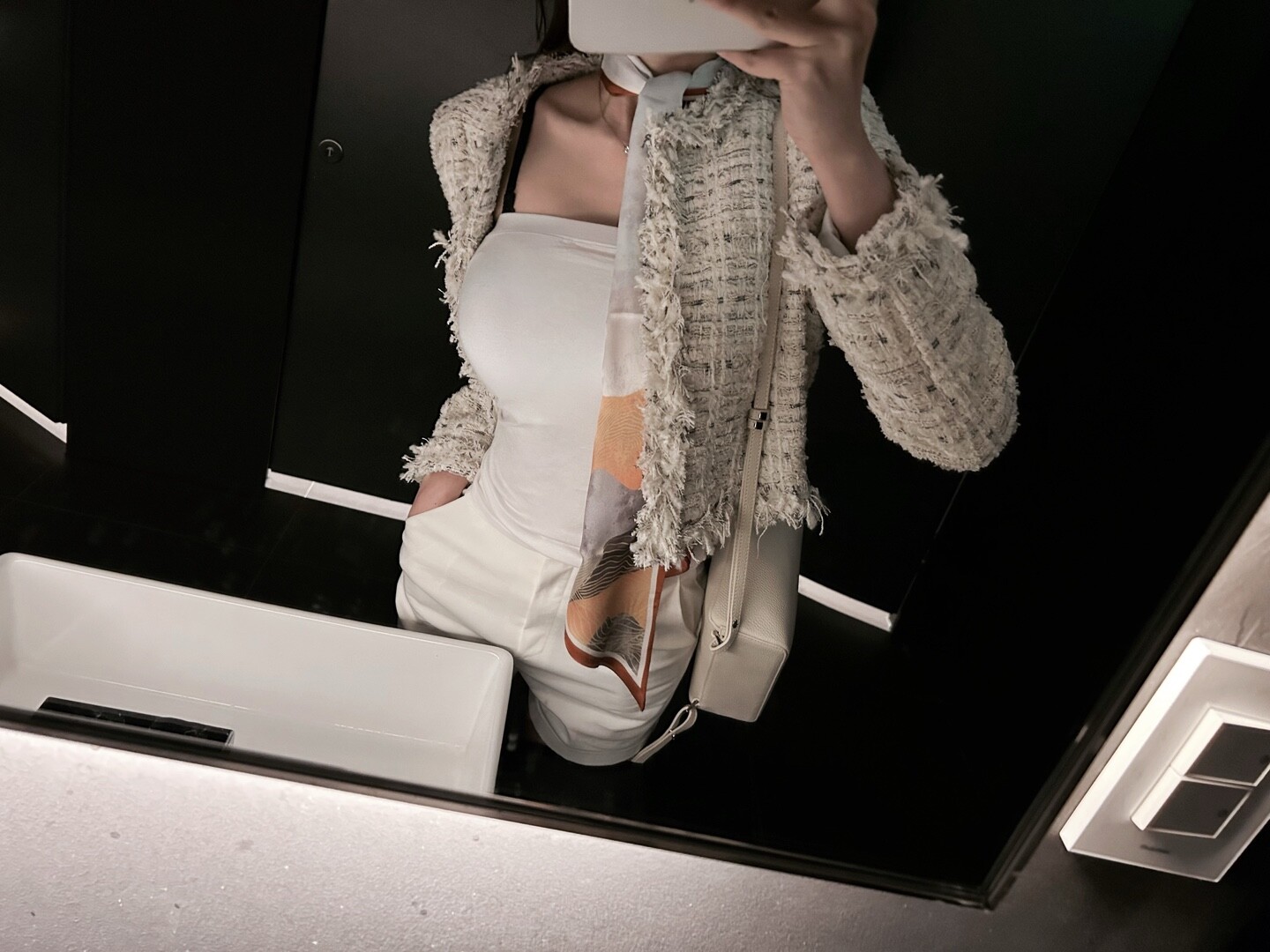 화이트 계열 색상 , 니트 , 린넨 등의 소재