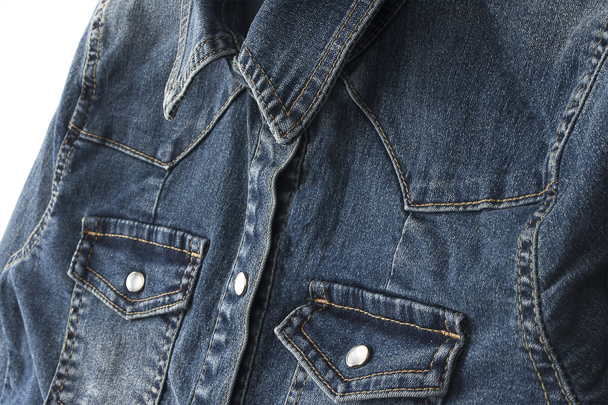 S , M , L , XL 4size 가 나오는 슬림핏 스판 데님 셔츠 입니다