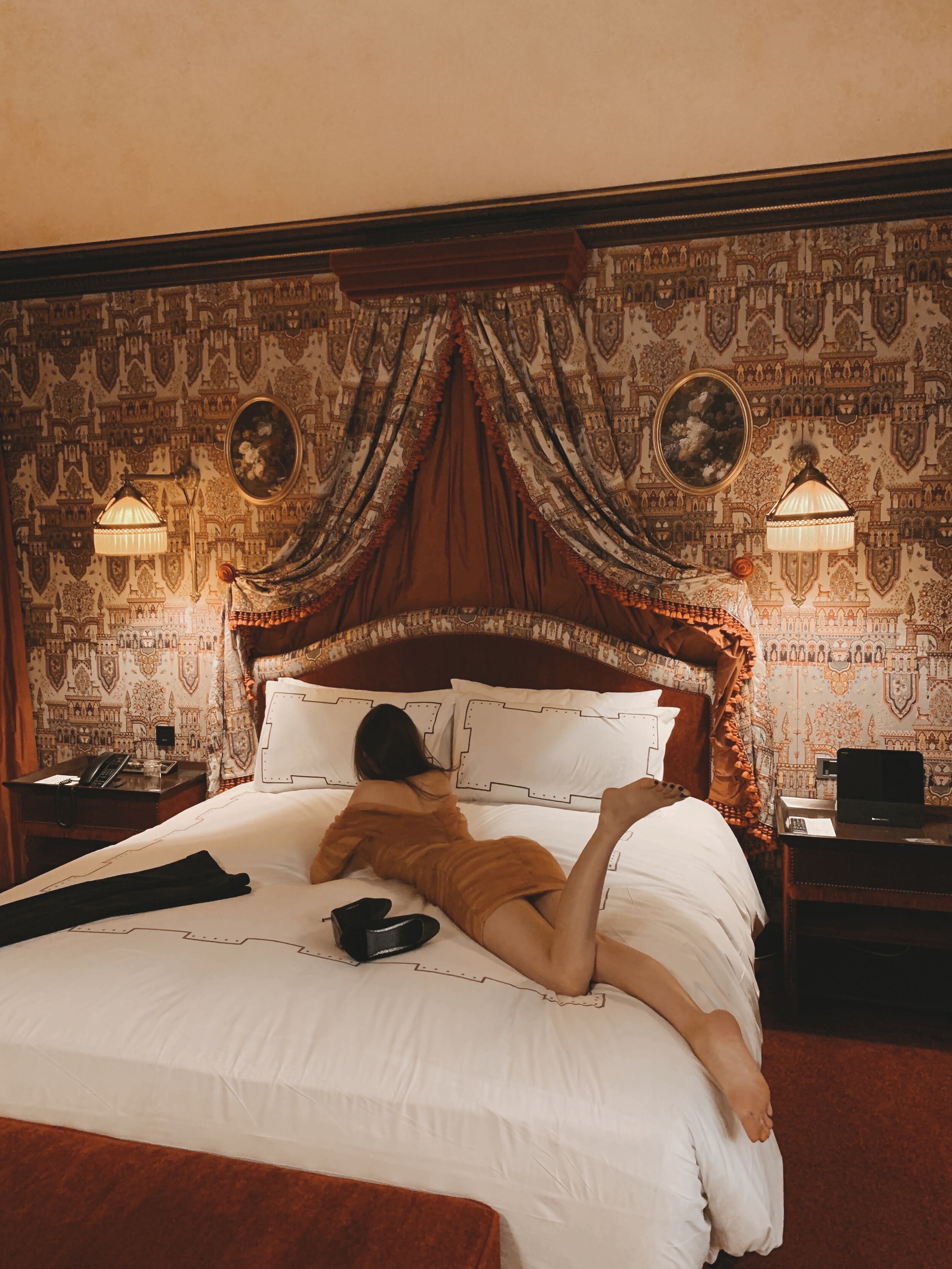 안쪽의 누드톤의 안감과 브라운 컬러의 셔링이 조화로워요